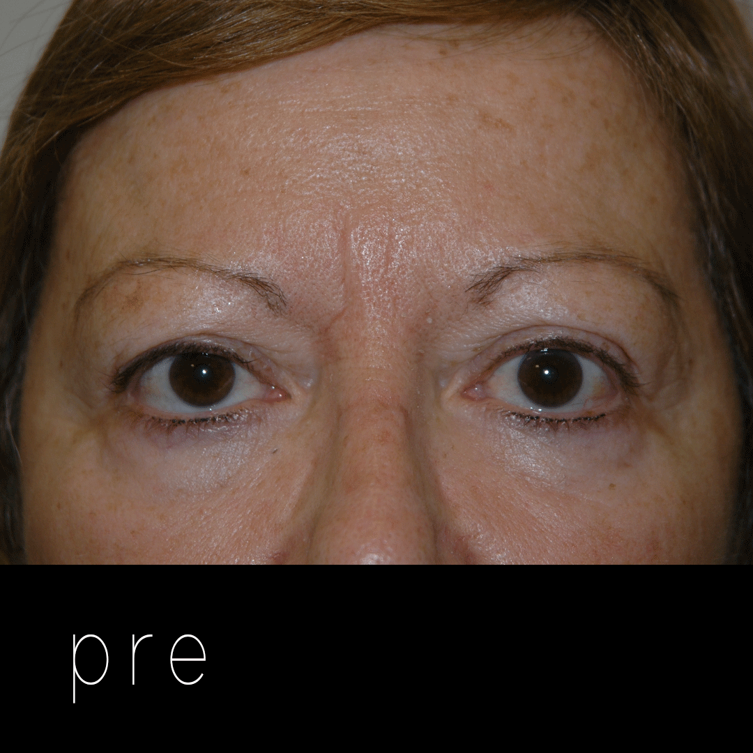 Cejas caídas (ptosis de cejas): Es habitual que se produzca un descenso de la cola de la ceja, ocasionando un mayor acúmulo de piel en el lateral, que entorpece el campo visual lateral.